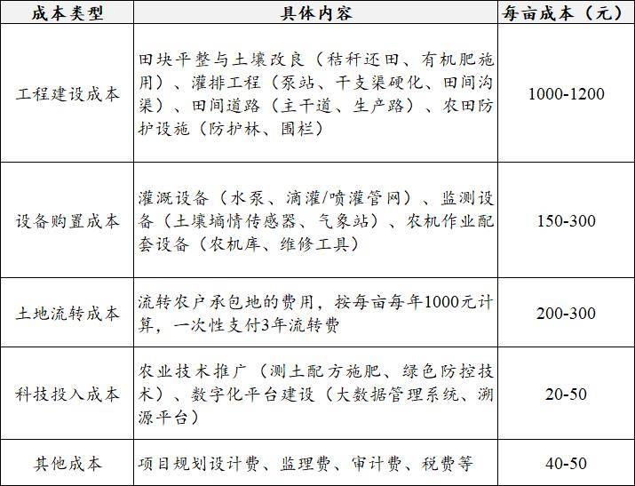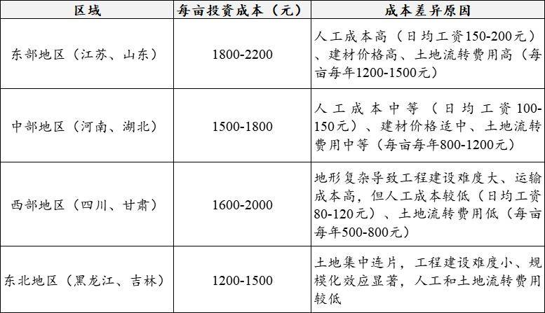 高尺度农田投资定位需紧扣国度粮食平安计谋、区域农业成长需乞降市场导向,实现“产能提拔、生态敌对、农人受益、可持续运营”的多元方针。按照投资从体、扶植规模和功能导向,次要分为以下四类定位。焦点方针是提拔粮食分析出产能力,保障口粮绝对平安,投资沉点聚焦小麦、水稻、玉米等从粮做植区。扶植区域以永世根基农田区、粮食从产区为焦点,凸起“规模化、尺度化、高产出”,通过田块整合、灌排配套、土壤改良等办法,打制“吨粮田”“稳产田”。投资从体认为从导,资金来历依托地方和省级农田扶植补帮资金,办事对象为种粮大户、家庭农场、农业合做社等规模化运营从体,焦点价值表现为粮食产能提拔、保障区域粮食供给不变。河南滑县粮食平安保障型高尺度农田项目,扶植规模50万亩,总投资8亿元。项目通过规模化田块整合(每块500亩以上)、配套大型节水灌溉工程和全程机械化功课前提,实现小麦亩产650公斤、玉米亩产700公斤;较前减产20%以上,年新增粮食产能1。5亿公斤。以“绿色低碳、轮回高效、生态敌对”为焦点,投资聚焦生态区、农产物从产区,将生态取农业出产无机连系。扶植沉点包罗土壤污染防治、节水灌溉、绿色防控、生态廊道扶植等,鞭策农业出产体例转型升级,提拔农产质量量平安程度。投资从体为+社会本钱,担任根本生态设备扶植,社会本钱参取绿色出产手艺推广、农产物品牌打制,办事对象为绿色农产物出产企业、生态农业合做社,焦点价值表现为农业面源污染减排、农产物质量提拔、农业生态系统改善。浙江安吉生态绿色高尺度农田项目,扶植规模10万亩,总投资2。2亿元,每亩投资2200元。项目配套生态沟渠120公里、绿色防控设备3000套,推广无机肥替代化肥、秸秆全量还田等手艺,实现化肥农药利用量较常规农田削减30%,灌溉用水效率提拔显著,出产的大米、蔬菜通过绿色食物认证,市场售价较通俗产物高20%。以数字化、智能化为焦点,投资聚焦农业科技示范园区、现代农业财产园,通过科技投入提拔农业出产精准化、高效化程度。扶植沉点包罗智能监测系统、精准灌溉施肥设备、农机从动驾驶系统、大数据办理平台等,鞭策农业从“经验种植”向“数据种植”转型。投资从体为+科技企业+农业运营从体,赐与政策补助和根本配套。科技企业投入手艺取设备,农业运营从体担任出产运营,办事对象为规模化聪慧农业企业、科技型家庭农场,焦点价值表现为出产效率提拔、资本耗损降低、农业现代化程度提高。安徽宿州聪慧高尺度农田项目,扶植规模8万亩,总投资2亿元。项目搭建了笼盖全域的土壤墒情、景象形象、病虫害监测收集,配套智能灌溉节制系统和农机从动驾驶设备,实现灌溉用水精准节制(节水30%)、化肥操纵率提拔25%,农机功课效率提高40%。立脚“农田+”融合成长,投资聚焦特色农产物产区、村落财产融合成长现范区,将高尺度农田扶植取特色种植、养殖、农产物加工、休闲农业等财产连系,延长农业财产链,提拔财产附加值。扶植沉点包罗特色做植区、种养连系设备、农产物初加工车间、仓储物流设备等。投资从体为社会本钱+农业财产化龙头企业,赐与政策支撑和根本设备配套,焦点价值表现为农业财产升级、农人增收渠道拓宽、村落经济活力加强。江西赣州财产融合型高尺度农田项目,扶植规模12万亩,每亩投资3600元。项目采用“高尺度农田+脐橙种植+初加工+休闲采摘”模式,配套扶植脐橙分拣包卸车间3个、仓储冷库5座、休闲参不雅步道20公里。项目实现脐橙亩产提拔30%,初加工产物附加值提高50%,带动农户户均年增收2万元。高尺度农田投资选址需分析考量天然前提、地盘资本、财产根本、政策要求等要素,确保投资效益最大化。1。天然前提适配准绳选址需优先考虑土壤前提适宜、水资本有保障、地形坡度适中的区域。避开地质灾祸易发区、生态红线区、永世根基农田以外的耕地,确保农田扶植取天然相适配,降低后期运营风险。河套平原高尺度农田项目,选址于黄河灌区,土壤肥饶、水资本充脚、地形平展,通过配套引黄灌溉工程和节水设备,实现玉米亩产达800公斤。2。集中连片准绳平原地域选址需满脚集中连全面积≥500亩,丘陵山区≥50亩,确保田块整合后可以或许适配机械化功课、规模化运营和根本设备配套。避开碎片化地块、村庄稠密区、交通从干道占用区,削减田块朋分,提拔农田操纵效率和扶植性价比。湖北江汉平原高尺度农田项目,选址于江汉平原焦点产粮区,集中连全面积达10万亩,通过田块平整、沟渠软化、道配套,实现了全程机械化功课,规模化种植降低了出产成本。3。财产协同准绳选址需取区域农业财产规划相跟尾,优先结构正在粮食从产区、特色农产物劣势区、现代农业财产园等财产根本较好的区域。接近农产物加工企业、仓储物流设备、发卖市场,推进“出产-加工-发卖”全链条协同,提拔农产物畅通效率,降低财产链运营成本。山东寿光蔬菜财产融合高尺度农田项目,选址于寿光蔬菜财产焦点区,周边堆积了200多家蔬菜加工企业、30个大型蔬菜批发市场。项目通过高尺度农田扶植取蔬菜种植、加工、发卖财产协同,畅通损耗率无效降低。4。政策合规准绳选址需严酷恪守河山空间规划、永世根基农田红线、生态红线等政策要求,确保扶植项目合适国度和处所相关规
